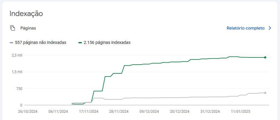 Centenas de novas páginas apareceram nas pesquisas mensalmente, aumentando sua autoridade e visibilidade.